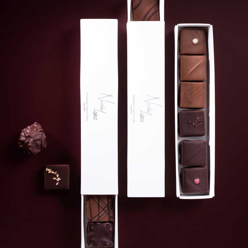 Plongez dans l’univers gourmand de Nicolas Léger et découvrez nos chocolats, et autres délicieux plaisirs sucrés!